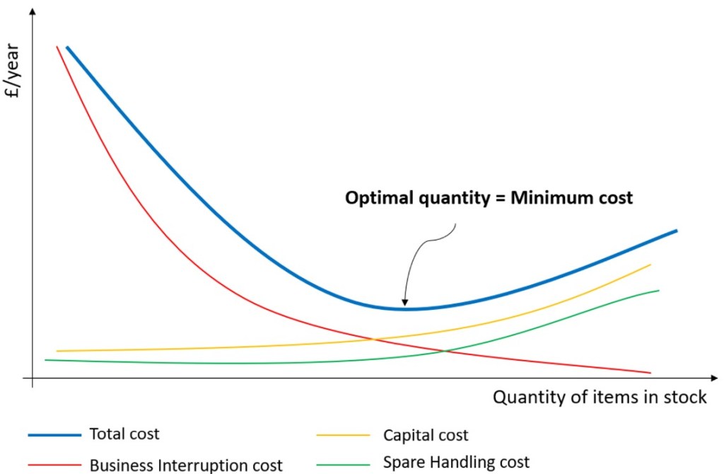 We have developed an in-house Monte Carlo simulation tool for the optimisation of spare parts. The tool calculates the whole life costing of various options, considering the business benefits (reduction of business interruption costs) and costs associated (i.e. capital costs, spare handling, obsolescence, and degradation) identifying the right quantity required for each item to minimise the overall business costs.